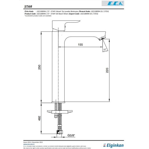 Смеситель для раковины E.C.A Star 102108994EX хром