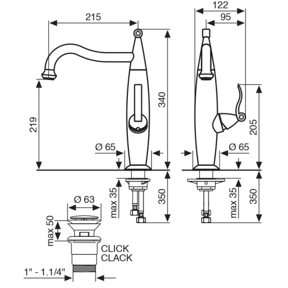 Высота излива 21.9 см