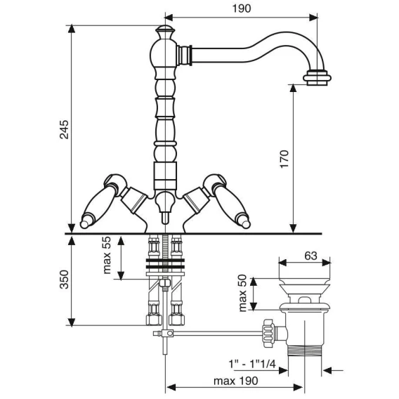 Крепление, Аэратор, Гибкая подводка, Донный клапан