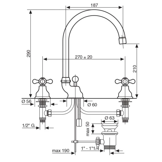 Смеситель для раковины Emmevi Deco Classic 12043/BR с донным клапаном, бронза