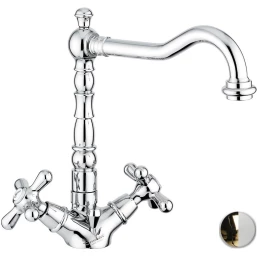 Смеситель для раковины Emmevi Deco Old 12613/BO с донным клапаном, золотой/белый