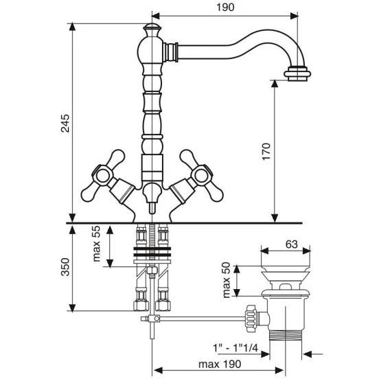 Крепление, Аэратор, Гибкая подводка, Донный клапан