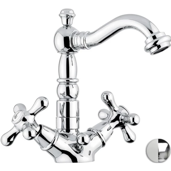 Смеситель для раковины Emmevi Deco Old 12615/BC с донным клапаном, хром/белый
