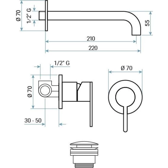 Аэратор, Донный клапан, Скрытая монтажная часть
