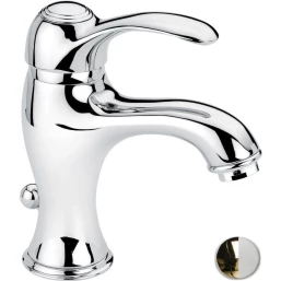 Смеситель для раковины Emmevi Harmony 22003/BO с донным клапаном, золотой/белый