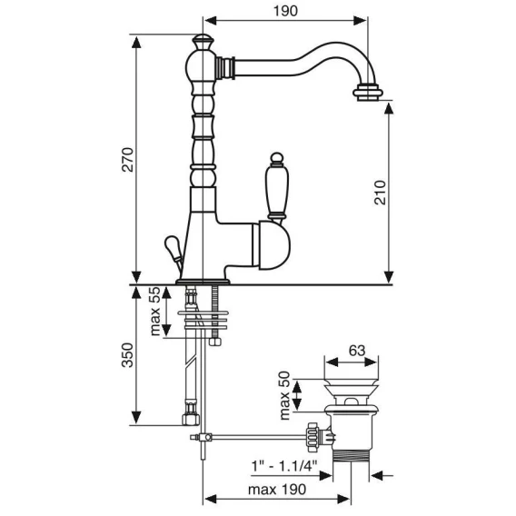 Высота излива 21 см