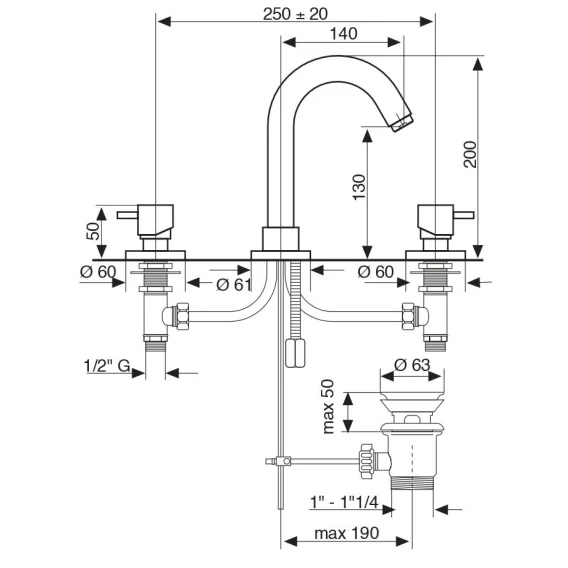 Смеситель для раковины Remer Kiss K10 с донным клапаном, хром