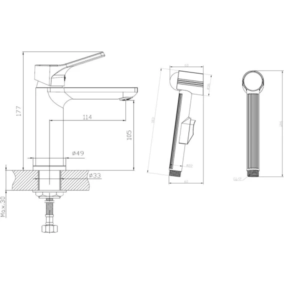 Гигиенический душ Boheme Tech 157-B со смесителем, черный матовый