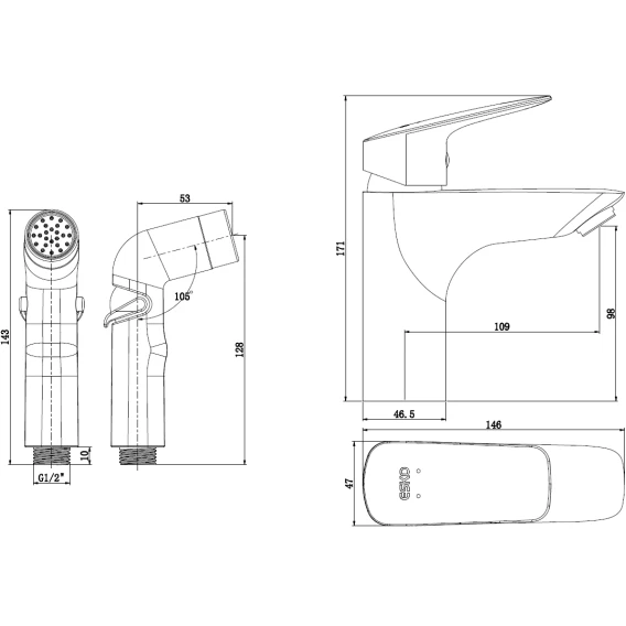 Крепление, Аэратор, Гибкая подводка, Душевой шланг, Душевая лейка, Держатель для душевой лейки