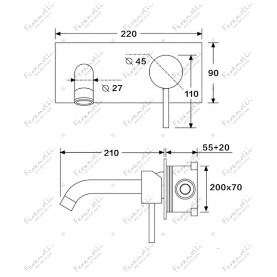 Смеситель для раковины Feramolli Ele CL649 встраиваемый, хром