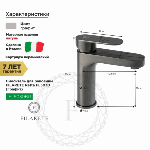 Смеситель для раковины Filarete Retta FL5030BG графит