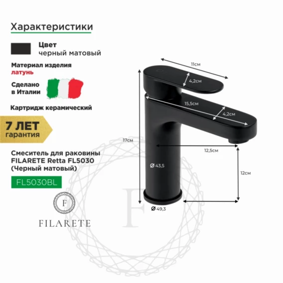 Смеситель для раковины Filarete Retta FL5030BL черный матовый