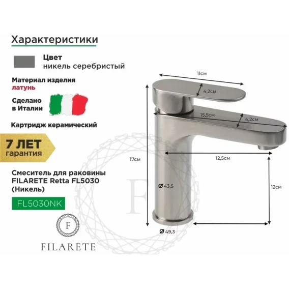 Смеситель для раковины Filarete Retta FL5030NK никель