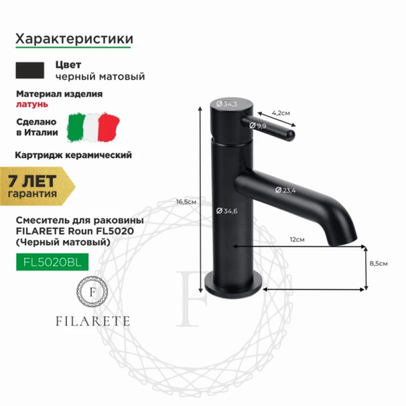 Смеситель для раковины Filarete Roun FL5020BL черный матовый