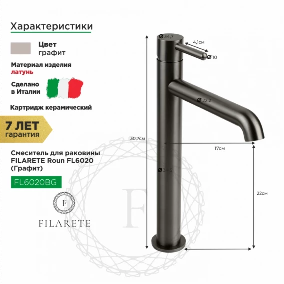 Смеситель для раковины Filarete Roun FL6020BG графит