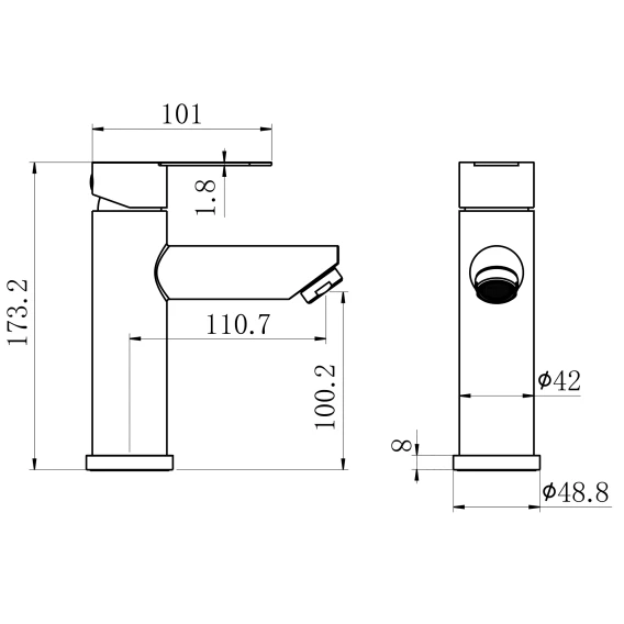 - Компактная высота корпуса — удобна для установки на стандартные умывальники.