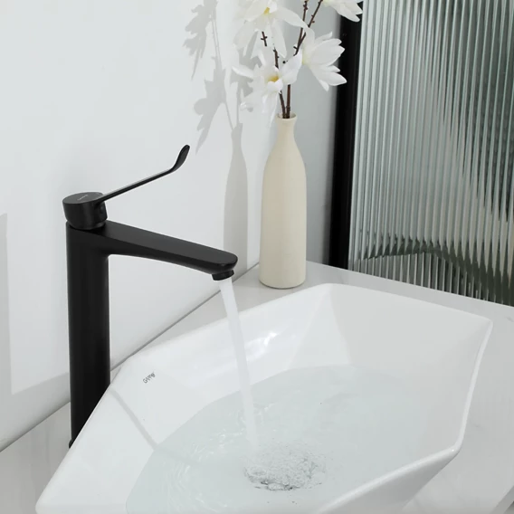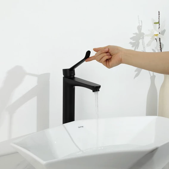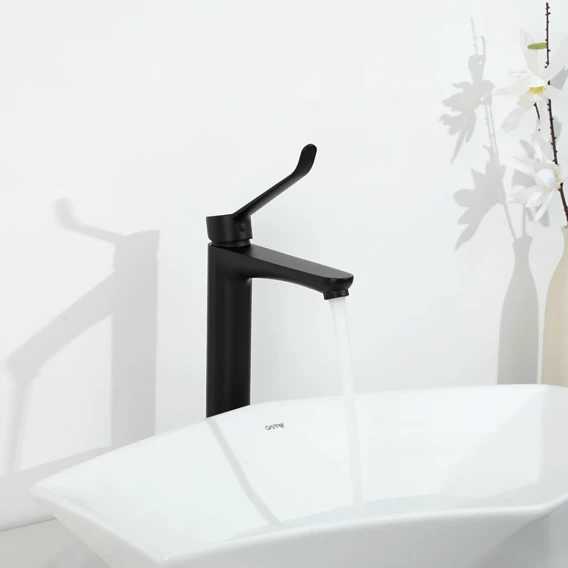 Смеситель для раковины Gappo G1021-26 медицинский, локтевой, черный матовый