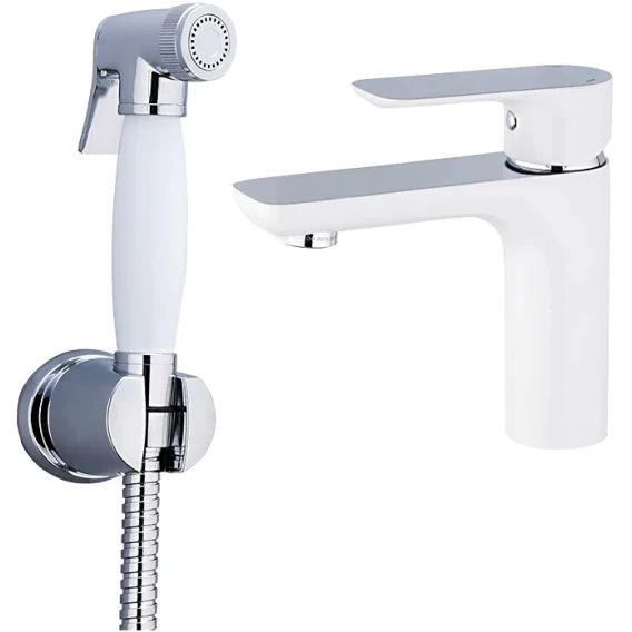 Смеситель для раковины Gappo G1048-1 с гигиеническим душем, хром/белый