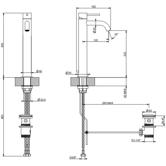 Высота излива 22.2 см