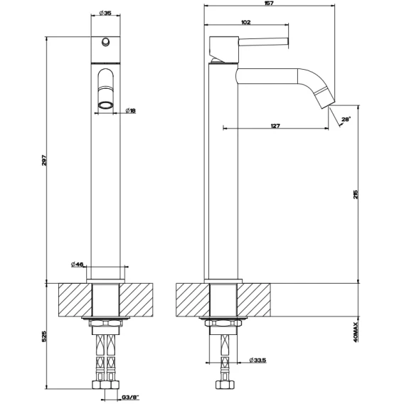 Высота излива 21.5 см