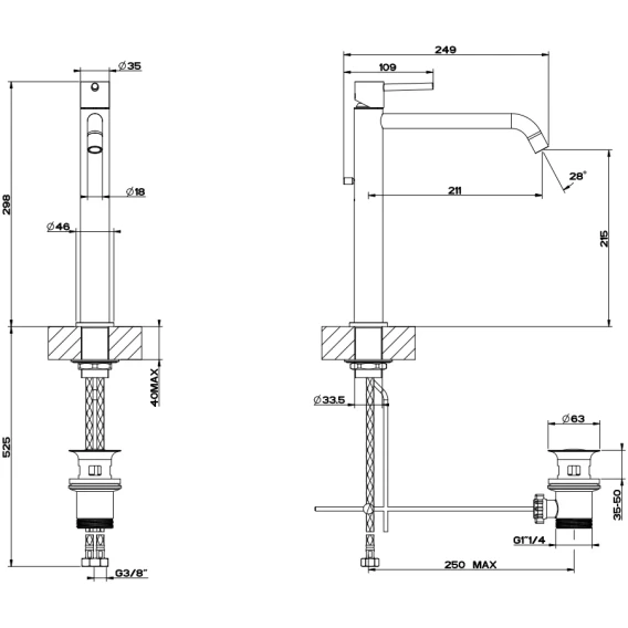 Высота излива 21.5 см