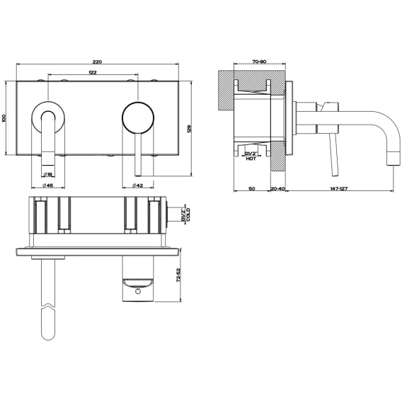 Смеситель для раковины Gessi Via Tortona 44823#299 встраиваемый, без донного клапана, черный матовый