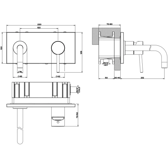 Смеситель для раковины Gessi Via Tortona 44827#031 встраиваемый, без донного клапана, хром