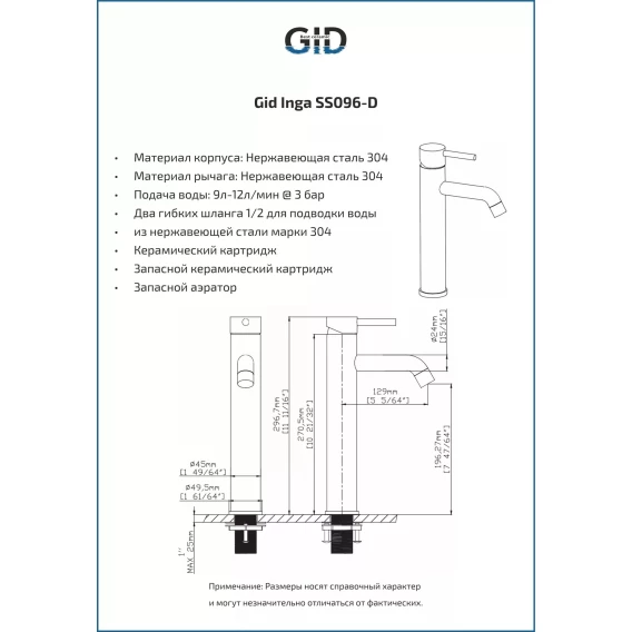 Высота излива 19.627 см