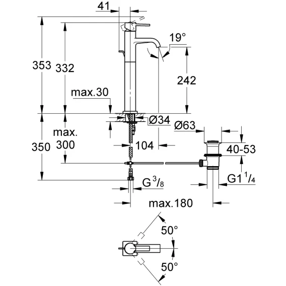 Смеситель для раковины с донным клапаном Grohe Eurodisc Cosmopolitan 23054003