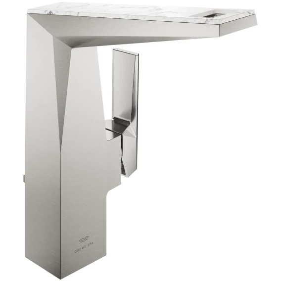 • излив с вставкой из белого кварцевого камня Caesarstone