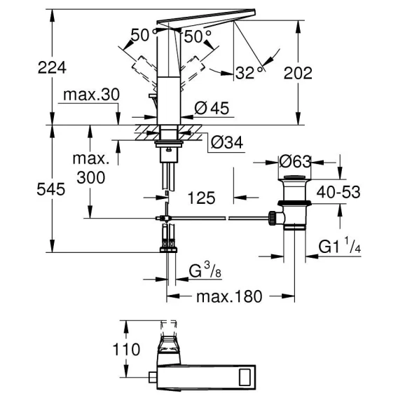 • GROHE Water Saving Технология совершенного потока при уменьшенном расходе воды