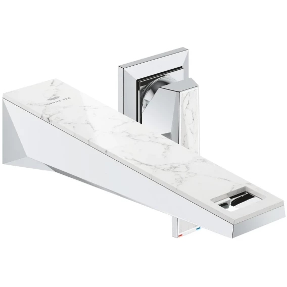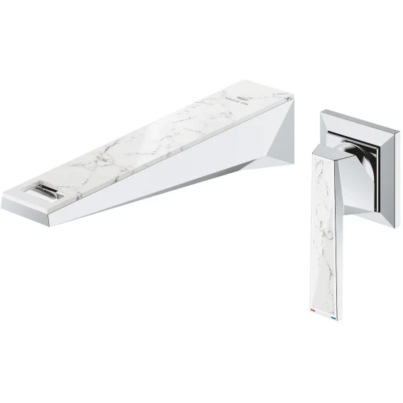 • излив и рукоятка со вставкой из белого кварцевого камня Caesarstone
