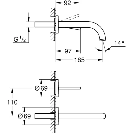 Смеситель для раковины Grohe Atrio New 19287DC3 встраиваемый, без донного клапана, суперсталь