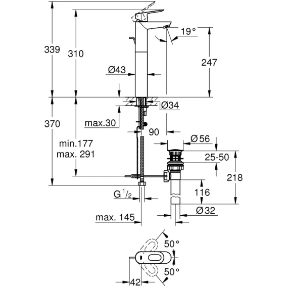 Смеситель для раковины Grohe BauLoop 32856000 с донным клапаном, хром