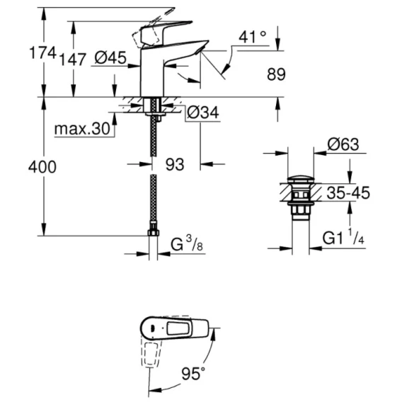 Крепление, Аэратор, Гибкая подводка, Донный клапан, CoolStart
