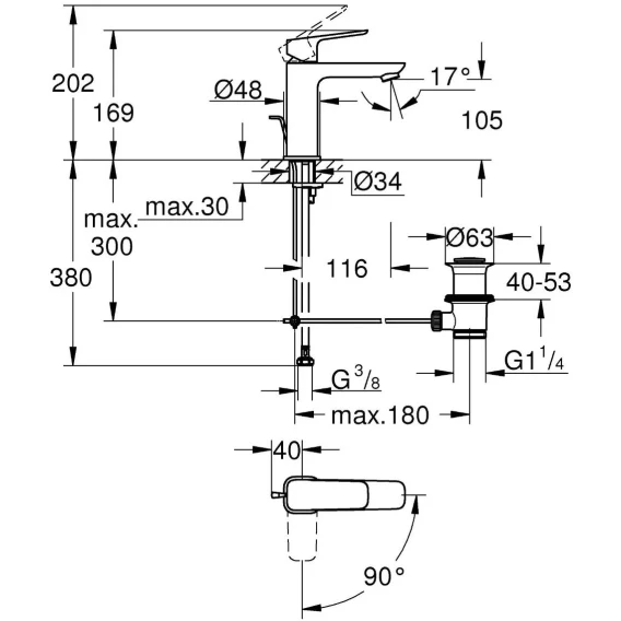 Крепление, Аэратор, Гибкая подводка, Донный клапан, CoolStart