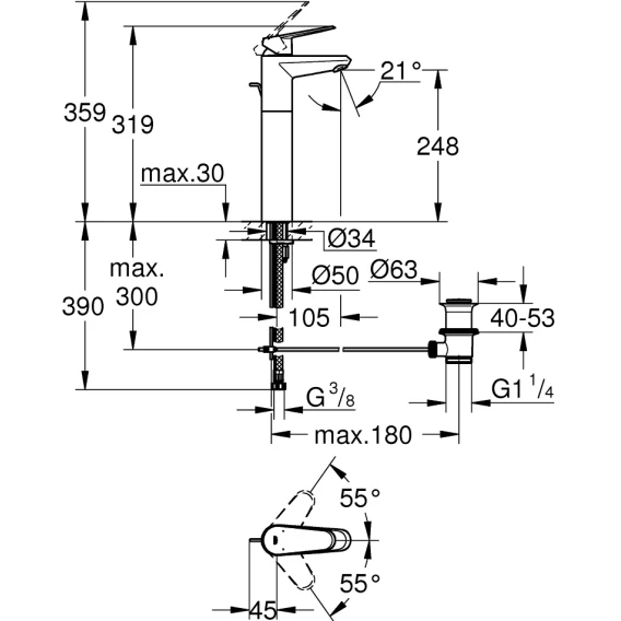 Смеситель для раковины с донным клапаном Grohe Eurosmart 23989003