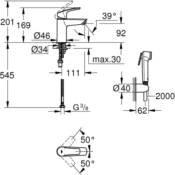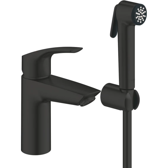Смеситель для раковины Grohe Eurosmart 231242433 с гигиеническим душем, без донного клапана, черный матовый