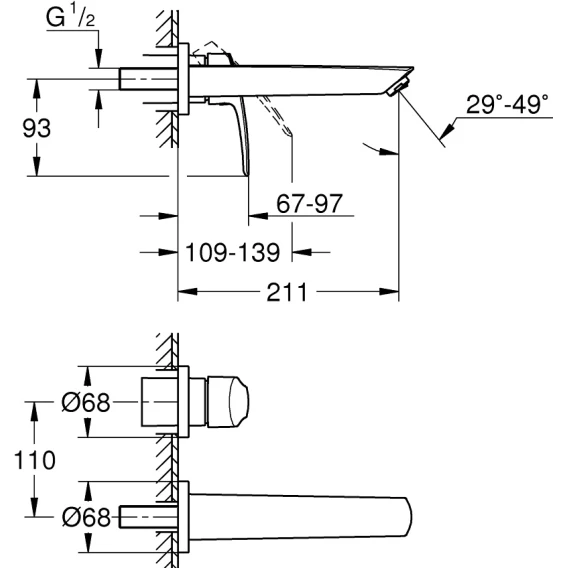 • вынос 211 мм