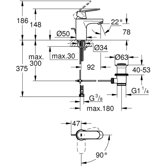 • монтаж на одно отверстие