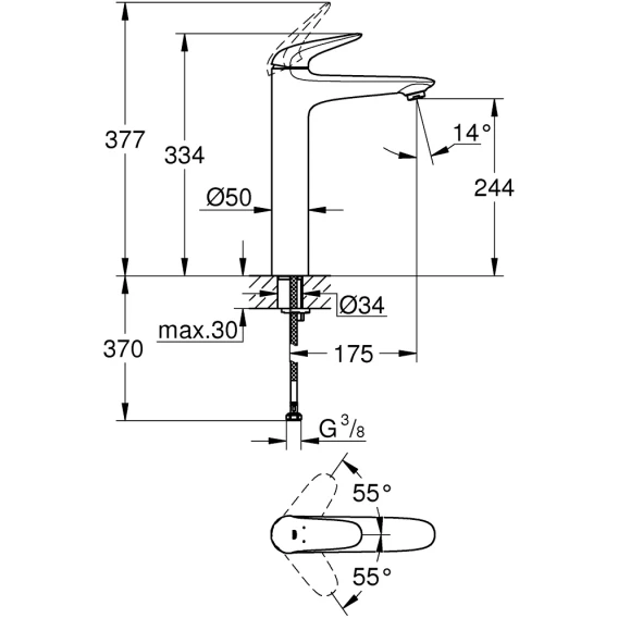 Смеситель для раковины Grohe Eurostyle 23719003 без донного клапана, хром