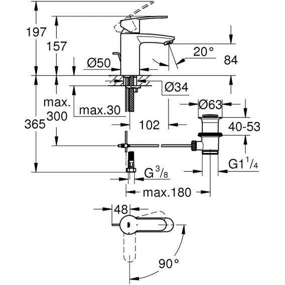 • GROHE SilkMove ES Керамический картридж 35 мм с энергосберегающей функцией (подача холодной воды при центральном положении рычага)