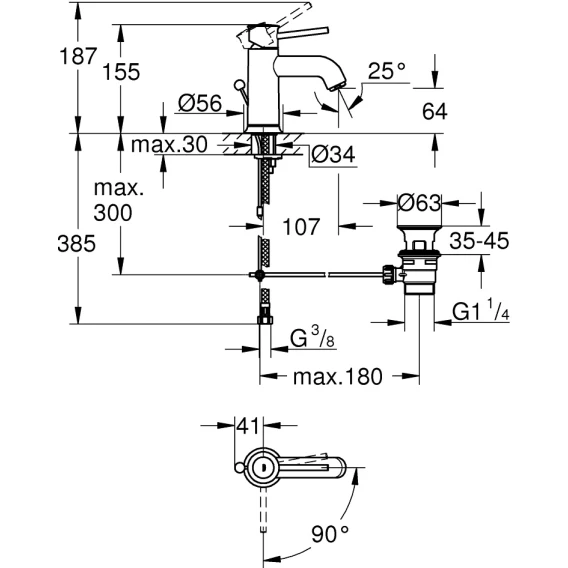 Смеситель для раковины Grohe Start Classic 23783000 с донным клапаном, хром