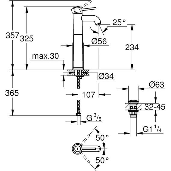 Смеситель для раковины Grohe Start Classic 23784000 с донным клапаном, хром