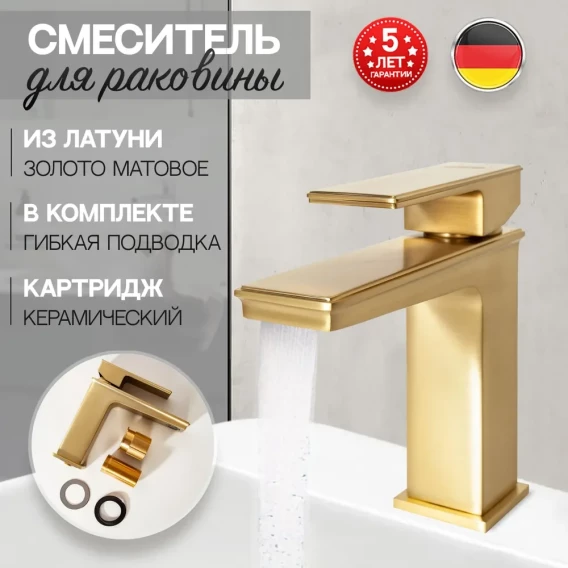 Смеситель для раковины Hansberge H1070MG золотой матовый