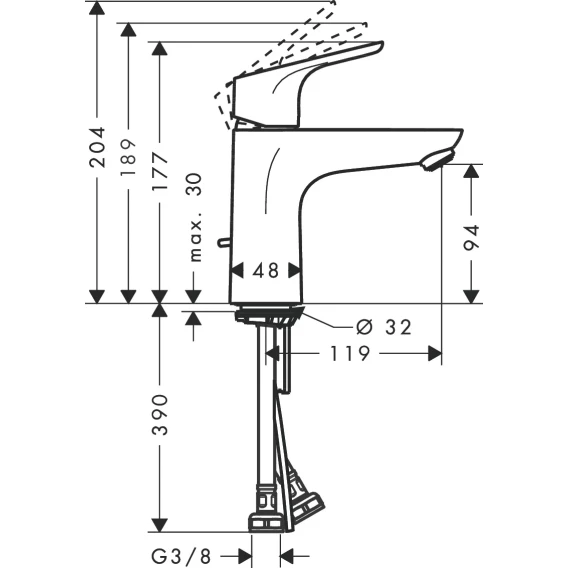 • состоит из: однорычажный смеситель для раковины, сливной набор.