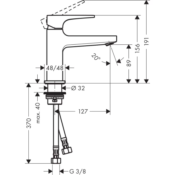 • состоит из: однорычажный смеситель для раковины, слив/перелив