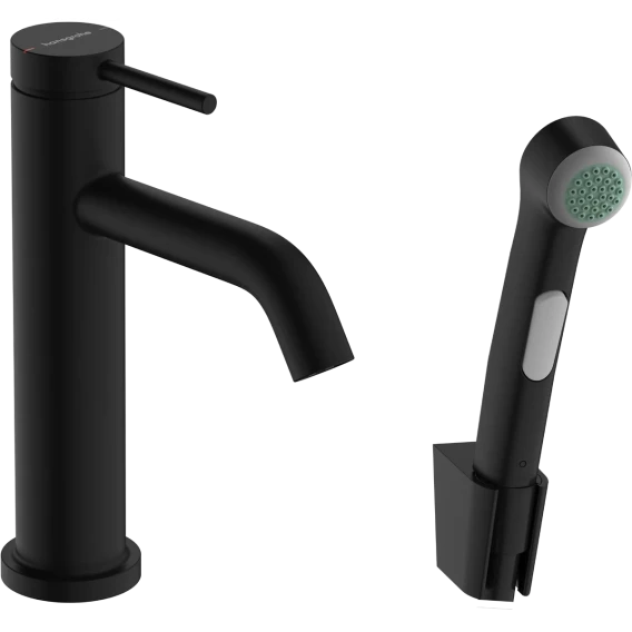 • состоит из: однорычажного смесителя для раковины, ручного душа для биде, держателя для душа, душевого шланга, донного клапана