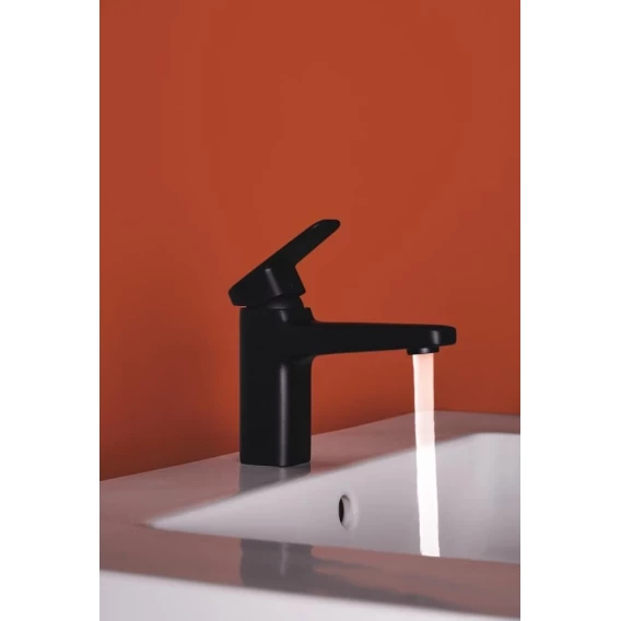CERAPLAN Смеситель для раковины без донного клапана, система монтажа EASY-FIх (облегченный монтаж), гибкая подводка G3/8", картридж FirmaFlow 38 мм с функцией HWTC (ограничение максимальной температуры горячей воды), металлическая рукоятка с индикаторами горячей / холодной воды, аэратор Slim с ограничением потока 5 л/мин