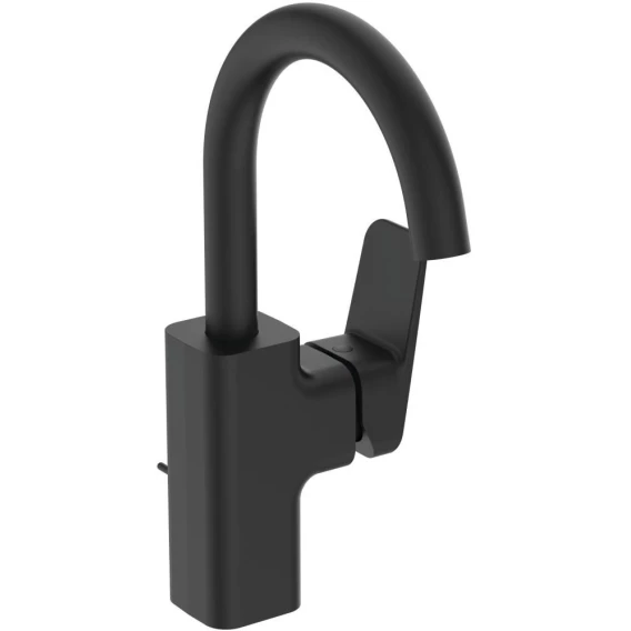 CERAPLAN Смеситель для раковины с высоким трубчатым поворотным изливом 180 мм, с металлическим донным клапаном, система монтажа EASY-FIх (облегченный монтаж), гибкая подводка G3/8", картридж FirmaFlow 38 мм с функцией HWTC (ограничение максимальной температуры горячей воды), металлическая рукоятка с индикаторами горячей / холодной воды, аэратор Slim с ограничением потока 5 л/мин